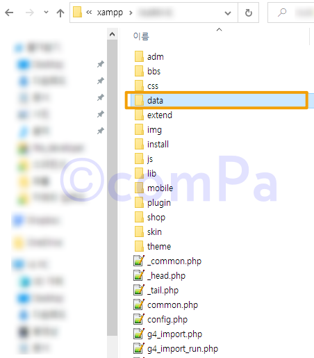 바로 data 폴더를 만드는 것이다. 새폴더 만들기 해서 폴더명을 data로 만들어 주기만 하면 된다.